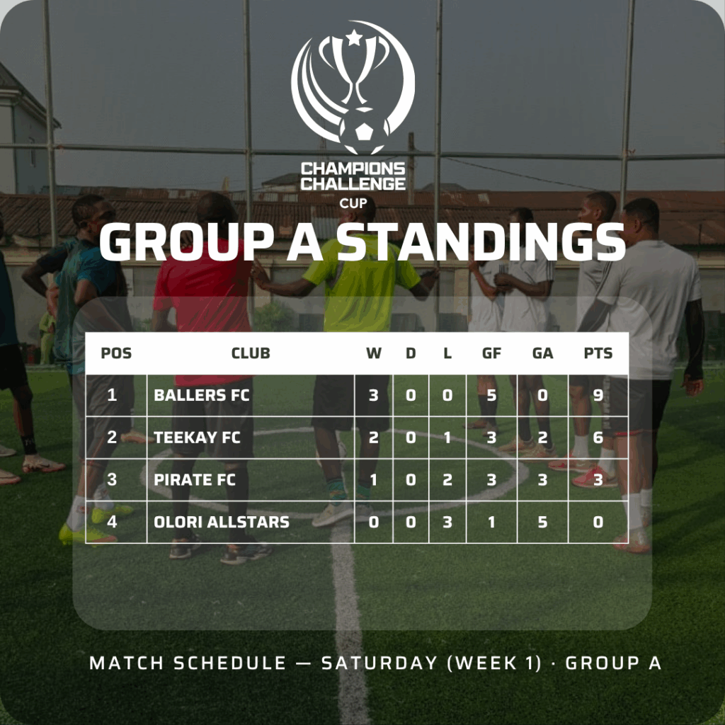 - Ballers FC: 3 wins from 3, 9 points, GF 5, GA 0. Clean sheets across board. Andy Jeff dey cook, Akpan ruthless, Chiji control tempo.